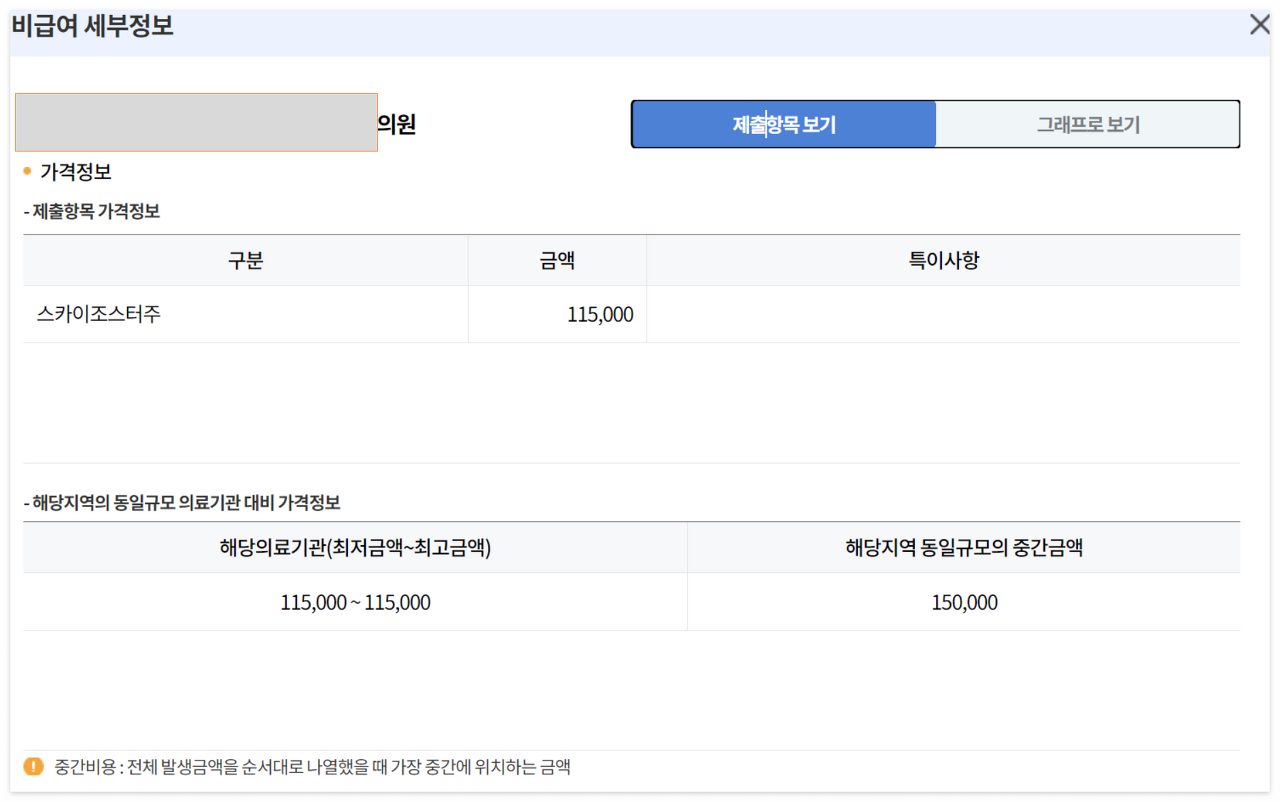 위의 병원 중 한 곳을 클릭해 보니 아래와 같이 스카이조스터주가 115,000원에 접종 중인 것으로 확인이 됩니다. 진료비용은 변경될 수 있으니 방문 전에 전화로 문의 후 방문하시기 바랍니다.
