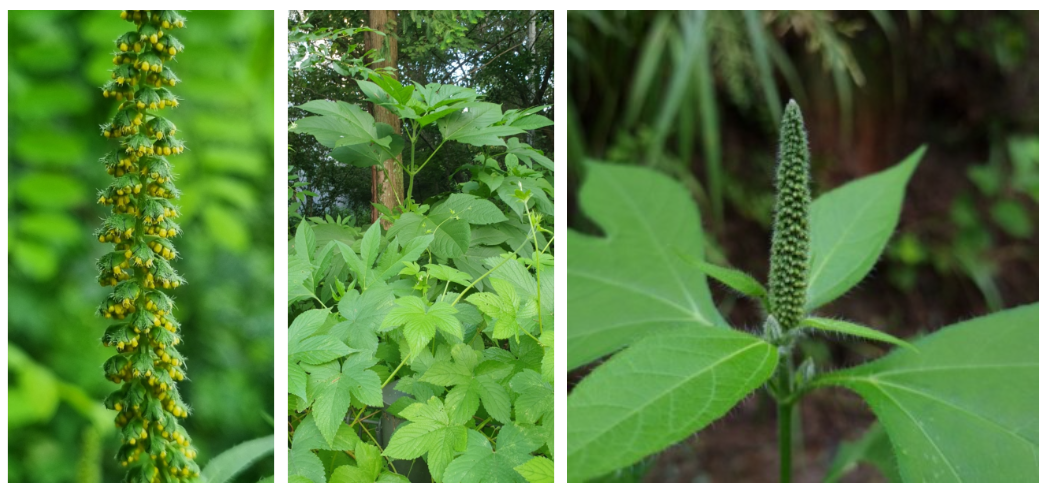 돼지풀은 녹색을 띠는 작고 눈에 띄지 않는 꽃을 피웁니다. 돼지풀 알레르기를 일으키는 수꽃은 주요 알레르기 항원인 꽃가루를 생성하며 바람에 의해 수분되고 공기중에 날아다녀 알레르기를 일으키게 됩니다.
